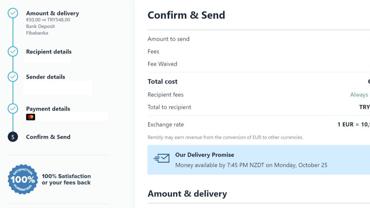 Het is eigenlijk precies hetzelfde als bij Wise. Je kunt bij Remitly uit wat meer opties kiezen met betrekking tot hoe de ontvanger het geld krijgt, van contant geld tot gestort op de bankrekening.
